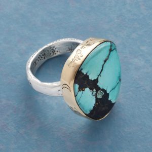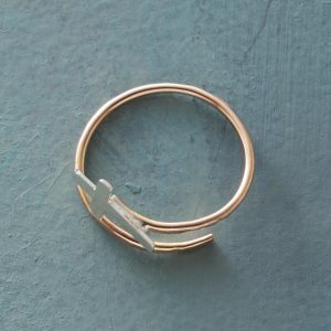 Our ethereal ring sets white topaz in 14kt gold plated bezels around a deeply textured sterling silver band. Exclusive. Whole sizes 5?C10.