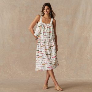 Lace straps and detail adorn this button-down tank with allover embroidery. Lined. Cotton. Hand wash. Imported. Sizes XS (0-2). S (4-6). M (8-10). L (12-14). Approx. 14l.