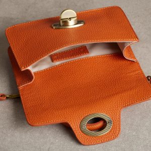 This compact sized bag scores big stylish points with sleek lines in luxe. pebbled leather and attractive turn-lock closure. with room for the essentials inside. Removable handle. adjustable/removable crossbody strap. Italy. Approx. 7.87w x 1.97d x 4.72h.