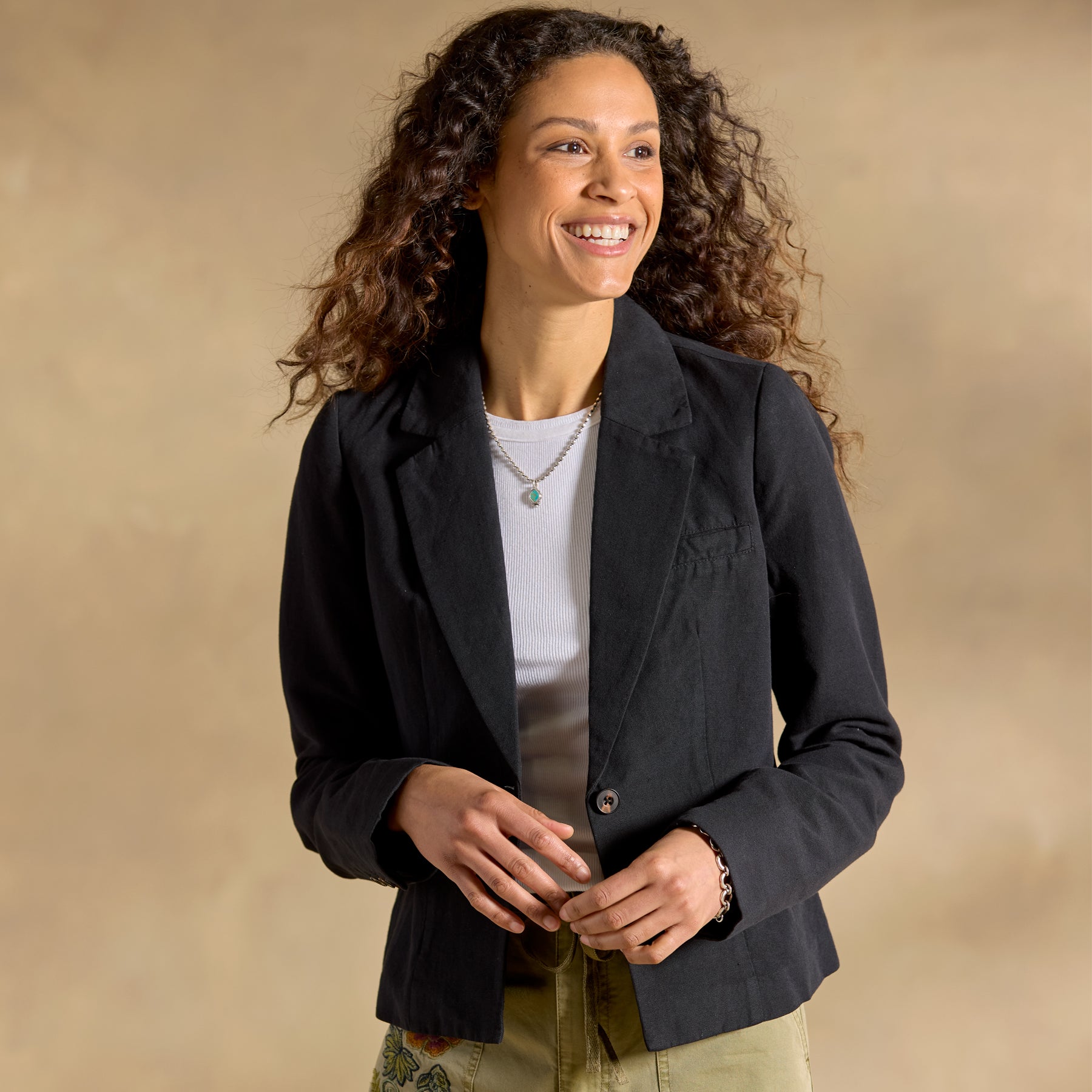 Meet the topper that’s getting double-takes all over town: our Picador Blazer. Lightweight and tailored to perfection. it features a classic fit with a flattering shorter length that hits right at the waistband of your pants or skirt. Contrast lining. Cotton/linen. Machine wash. Imported. Exclusive. Sizes XS (0-2). S (4-6). M (8-10). L (12-14). XL (16-18). XXL (20-22). Approx. 21l.