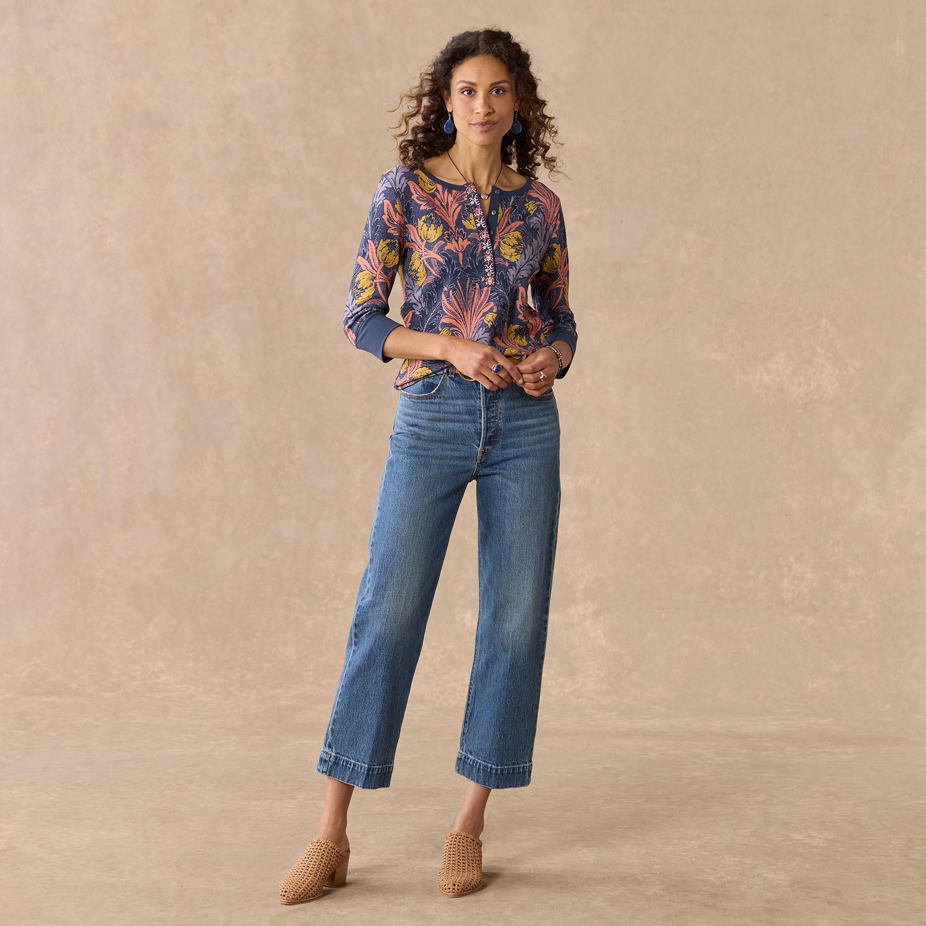 Our thermal henley in an oversized placed floral print is so lovely with embroidery at the placket. metal buttons and contrast twill tape details. Cotton/spandex. Machine wash. Imported. Exclusive. Sizes XXS (00). XS (0??). S (4??). M (8??0). L (12??4). XL (16??8). Approx. 23.5l.