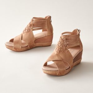Eye-catching curves and all-day comfort are a winning combination in these woven. pebbled leather sandals with back zippers and extra-thick. cushioned insoles. Imported. Euro whole sizes 36-41. 36 (US 5). 37 (US 6). 38 (US 7). 39 (US 8). 40 (US 9). 41 (US 10). 2 wedge.