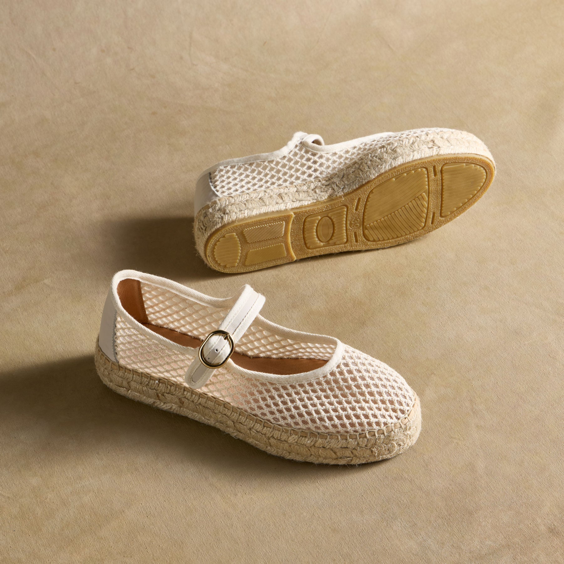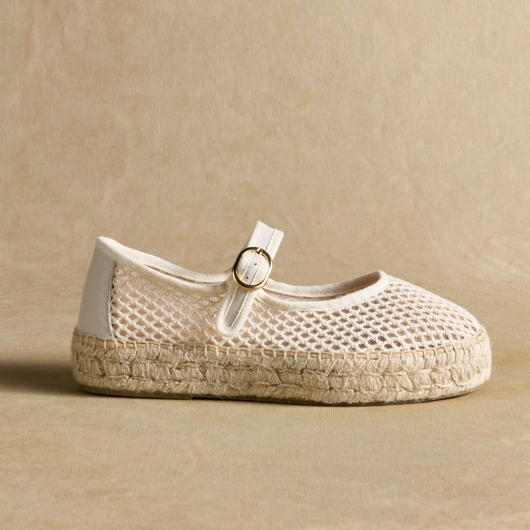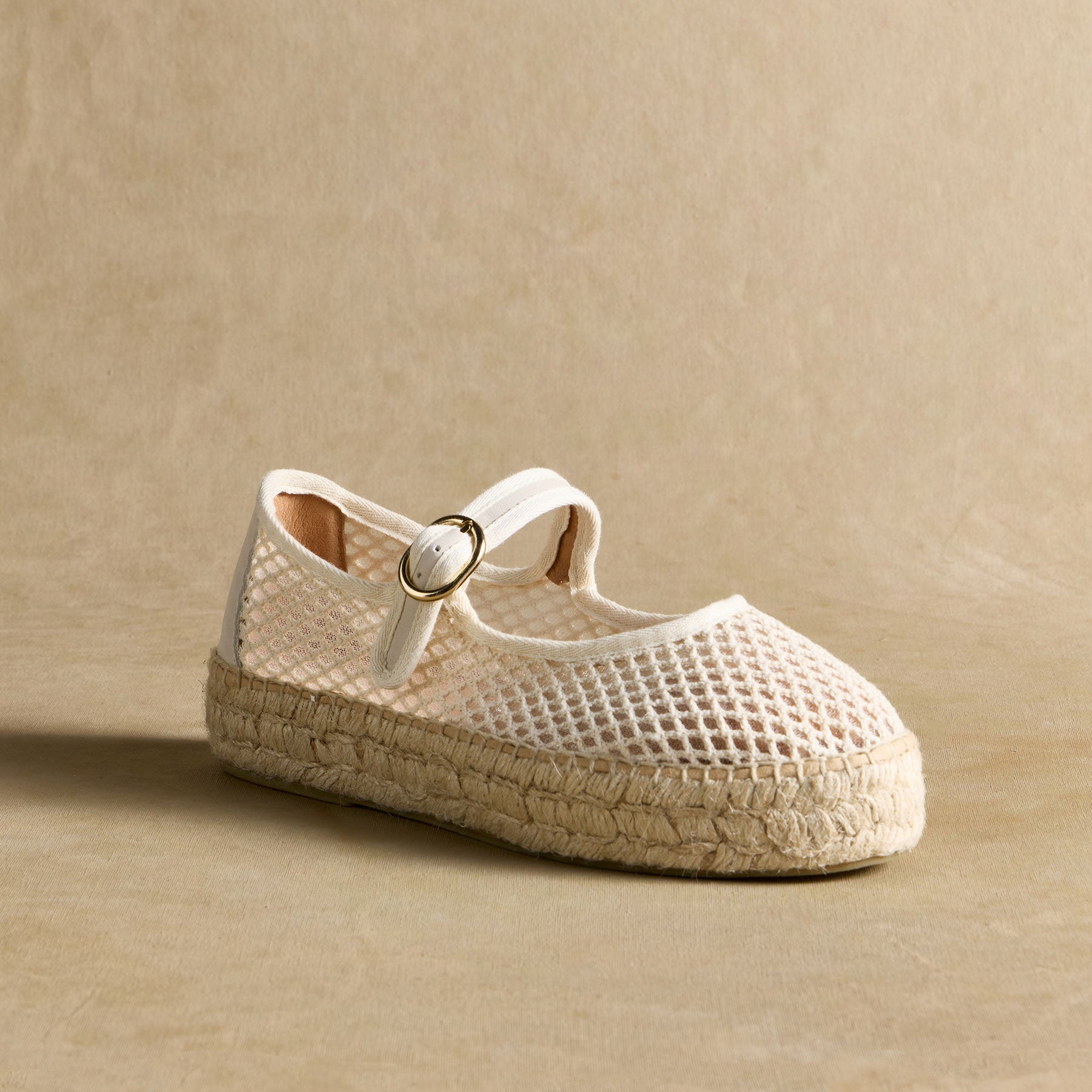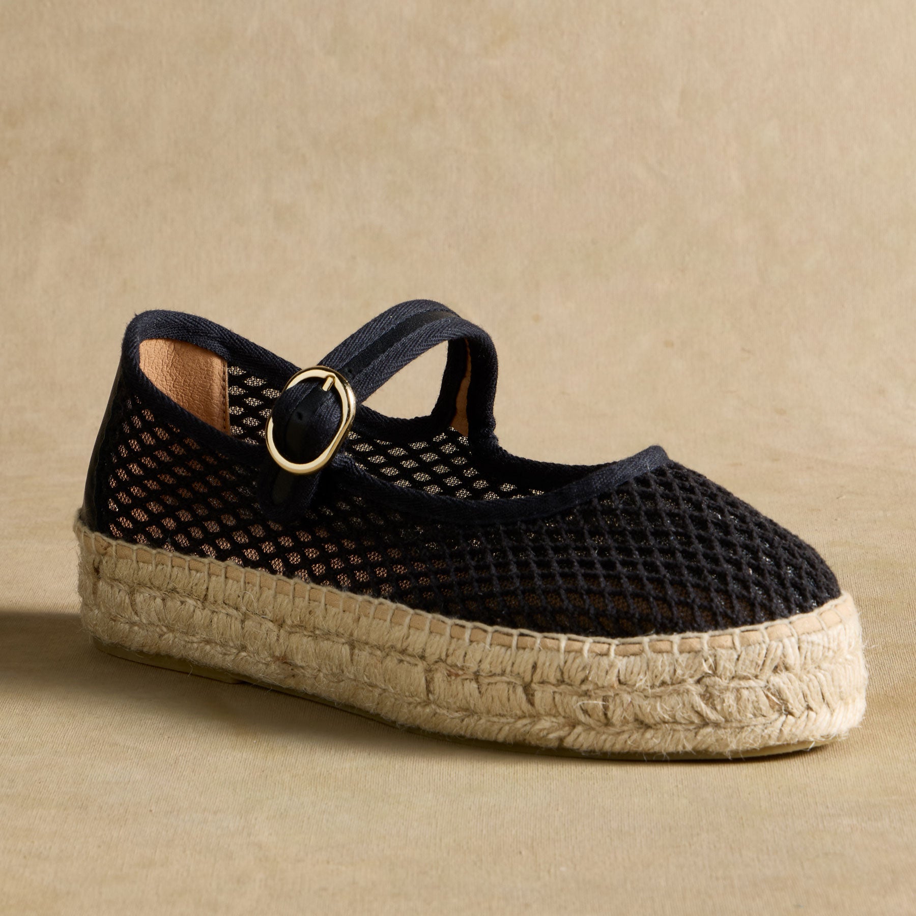Light as a breeze. the Volta Mesh Espadrilles combine timeless style with effortless comfort. Featuring a breathable mesh upper. classic Mary Jane strap with a gold-tone buckle. and a handwoven jute sole. these espadrilles are perfect for sun-drenched strolls and laid-back elegance.